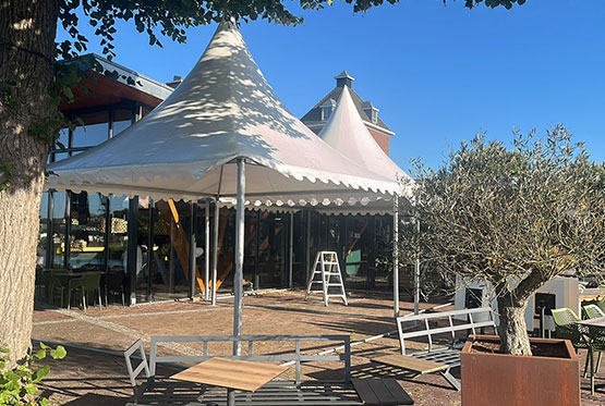 Met hun herkenbare puntdak en moderne uitstraling zijn onze pagodetenten perfect voor feesten, bruiloften en evenementen. Zowel losstaand als gekoppeld geven ze iedere gelegenheid een praktische én sfeervolle oplossing.